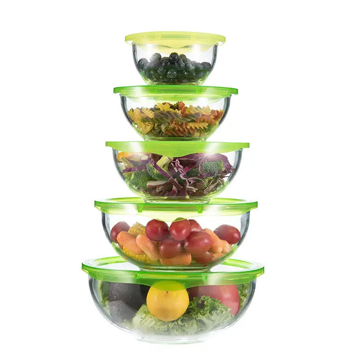 Glasfruitbak, mooi en duurzaam, met kleurrijk PP-deksel, maat 0.5L-3.5L, kan worden aangepast. Geschikt voor verschillende gelegenheden en gemakkelijk te dragen, zodat u op elk moment kunt genieten van heerlijk eten.- Ik weet het niet.